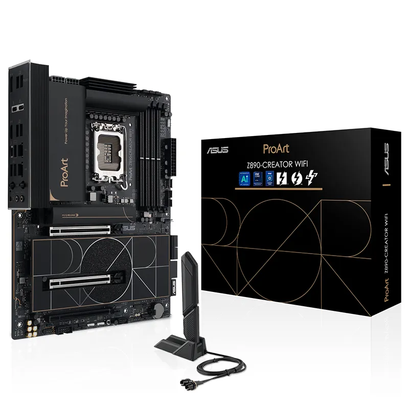 The ProArt Z890-CREATOR WIFI empowers creators of all levels by maximizing the performance of the latest Intel® Core™ Ultra Processor (Series 2) processors with 16+1+2+2 team power stages, DDR5 slots, PCIe® 5.0 and lightning-fast connectivity including dual Thunderbolt™ 5 ports, 10G and 2.5G Ethernet, and WiFi 7.