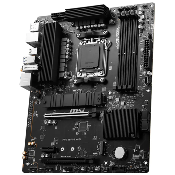 Unleash and sustain the maximum performance with a flagship VRM design built with a total of 12+2+1 power design. Combining dual power connectors and exclusive Core Boost technology, PRO B650-S WIFI is ready for the challenge of high-end processors.