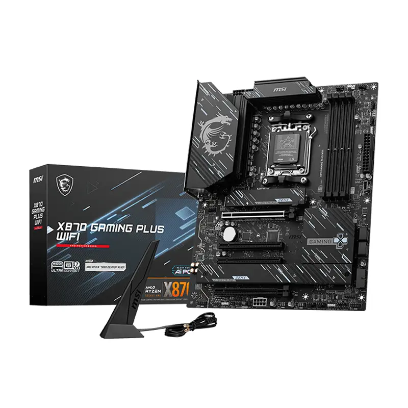 X870 GAMING PLUS WIFI is designed with durable components to provide great gaming experience. Designed with Wi-Fi 7 and 5G LAN, high-speed USB4, PCIe 5.0 solutions, Supplemental PCIe Power and exclusive EZ DIY features, it’s ready for 24/7 non-stop gaming of AMD Ryzenâ„¢ 9000 series processors.